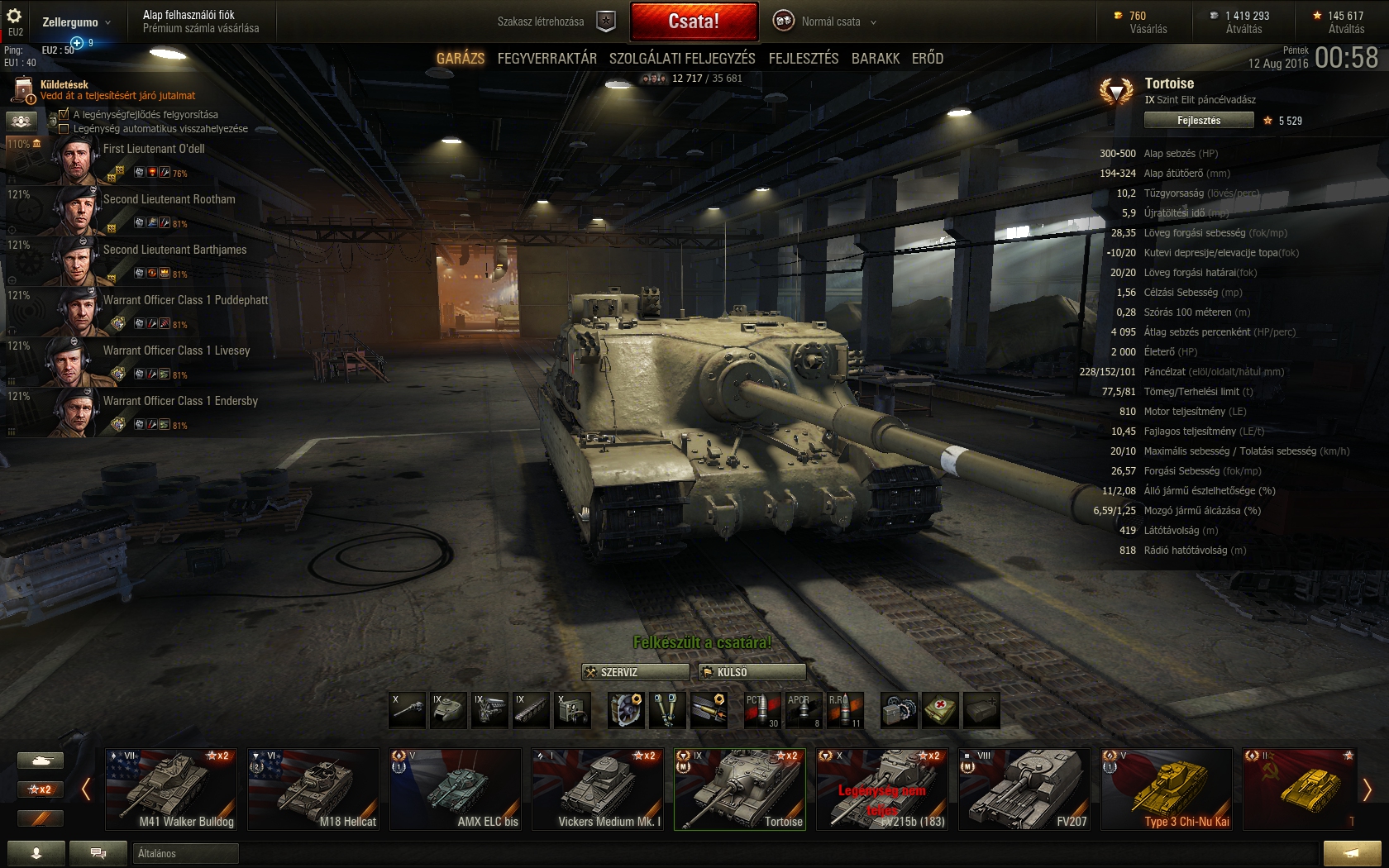 Nagyjából két év alatt lett 11 tizes tankom, átlagban 5 skilles legénységgel, a light tankjaimban átlagban 3 skilles legénység van.