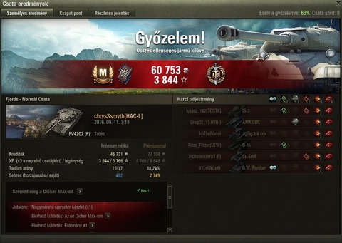 Ezt a csatát nem gondoltam hogy meg tudjuk nyerni. Elég nagy hátárnyban voltunk. Végül taktikusan sikerült lehozni. Repesszel lőttem vakon egyet kemper bokorba aztán egy sp1c jött ki belőle égve.