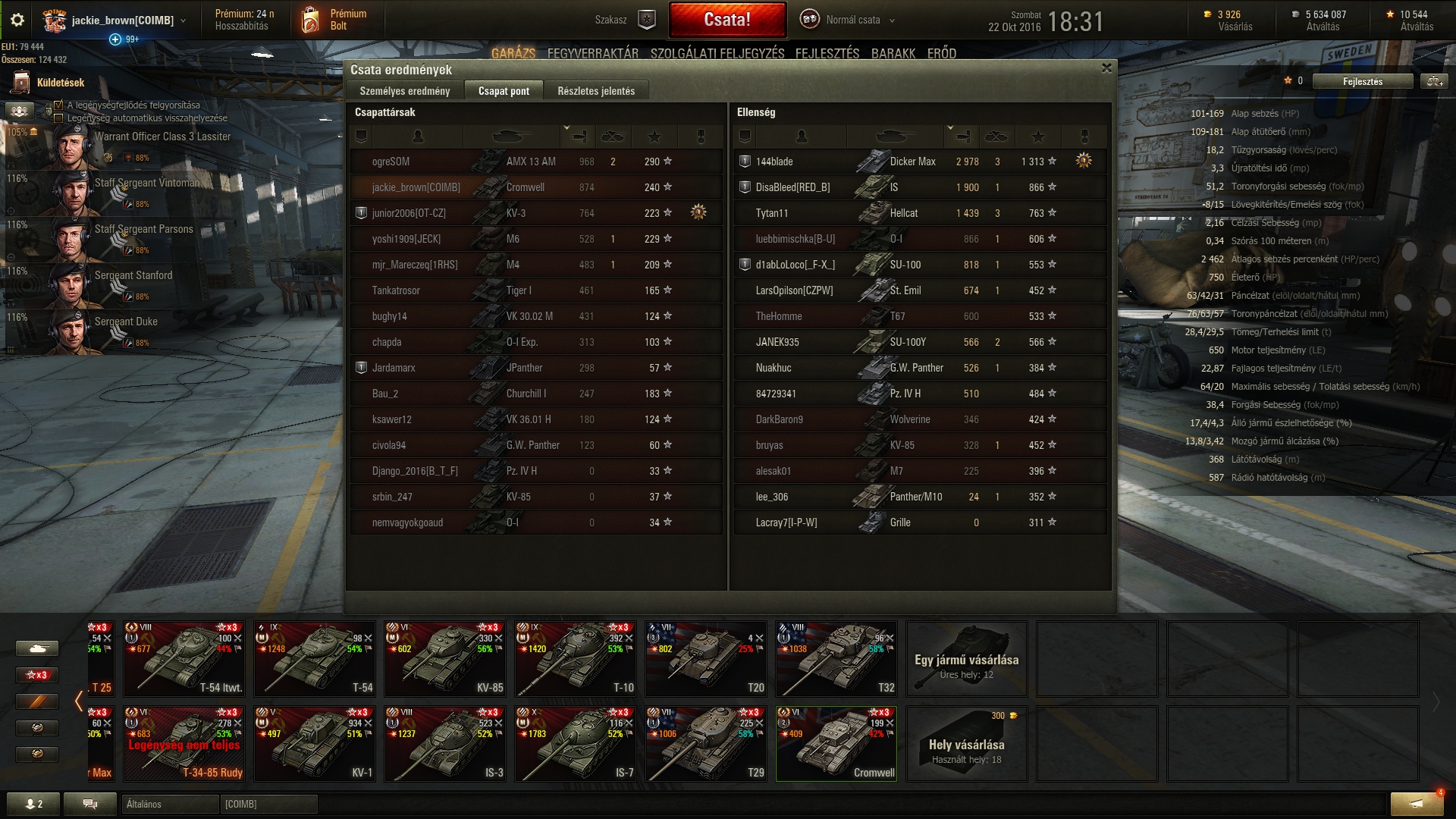 KV-1 -től kezdve a sort ami szerintem 100% legényekkel indult mivel tudtam hogy megtartós tank lesz és minden egyes heavy az ágon arannyal átképezve (tudom láma dolog) esetleges skill újraosztások szintén és nem vagyok csúcs játékos ill. ritkán nyomtam legénységi szorzót. Prém fiókkal.