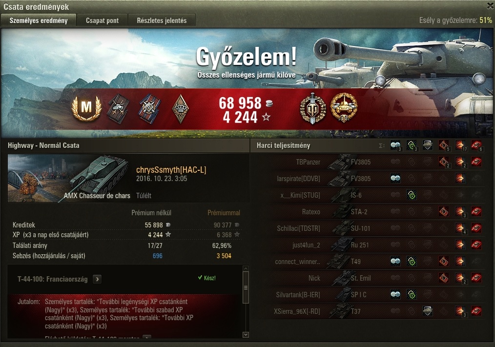 ezeket a lófasz T44-100 marathon küldiket hányas tier-től lehet csinálni!? Én eddig azt gondoltam, hogy bármilyen tier-el, de most mentem 3- csatát FCMPaxk40-el öltem 14 és nem adódott hozzá a Francia killekhez!?