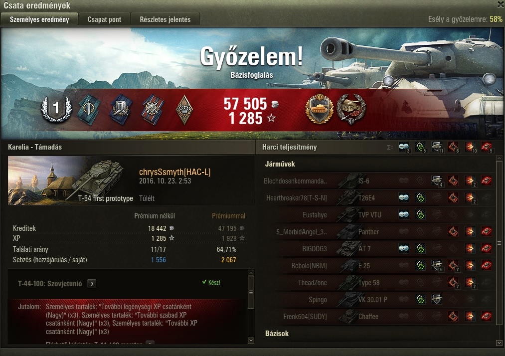 Mindez 2532 csata eredménye a KV-1 elit szint eléréséhez kellő 61850 xp-n felül.