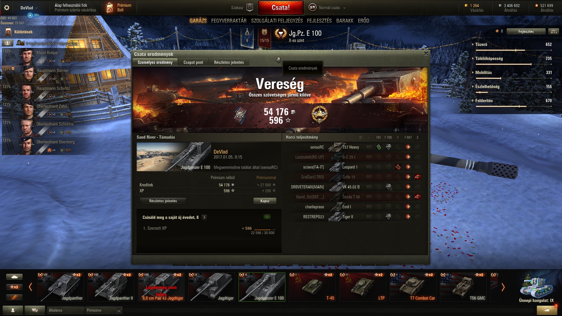 Nem akarom elkiabálni de ha ilyen jól adja és nem kell túl sok erőfeszítést bele raknom akkor lehet hogy az E-50 és AMX 30 is 3rd gunmarkra kerülhet ahogy a T-54.Más : Már sokadjára látom hogy leteszed magadat hsz-ben. Ne tedd ! Én is vérvörös piros játékos voltam mikor felraktam először az XVM-et. Igaz a pofámról lesült a bőr mikor megnéztem a táblázatot hogy mennyi az annyi