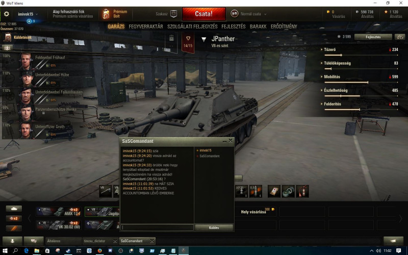 Én egy heavy tankra vágyom már, borzasztó, hogy kezdőként csak light-ok vannak, ami baromira nem az én játékstílusom. Bukok is, mint az állat.