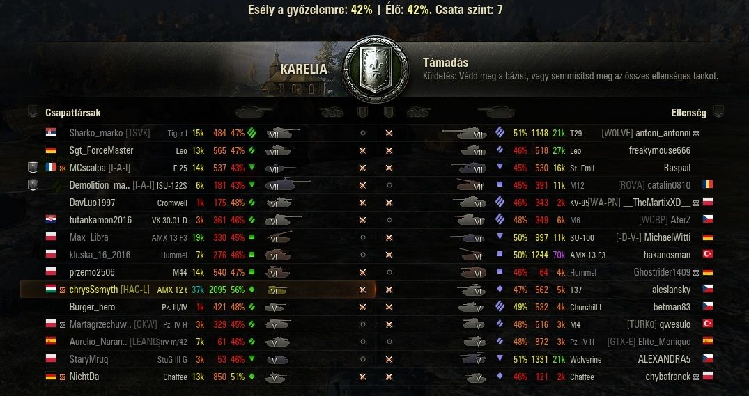 Über gáz ami most van a játékban. 5/5 bukta! már szervert is váltottam, az sem segített! Tudom, hogy nem ér az XVM sacc semmit - ezért is van csak csata után nálam, hogy mennyi esélyünk volt, de 70%-os csatát mint a pinty bukjuk el sorban.