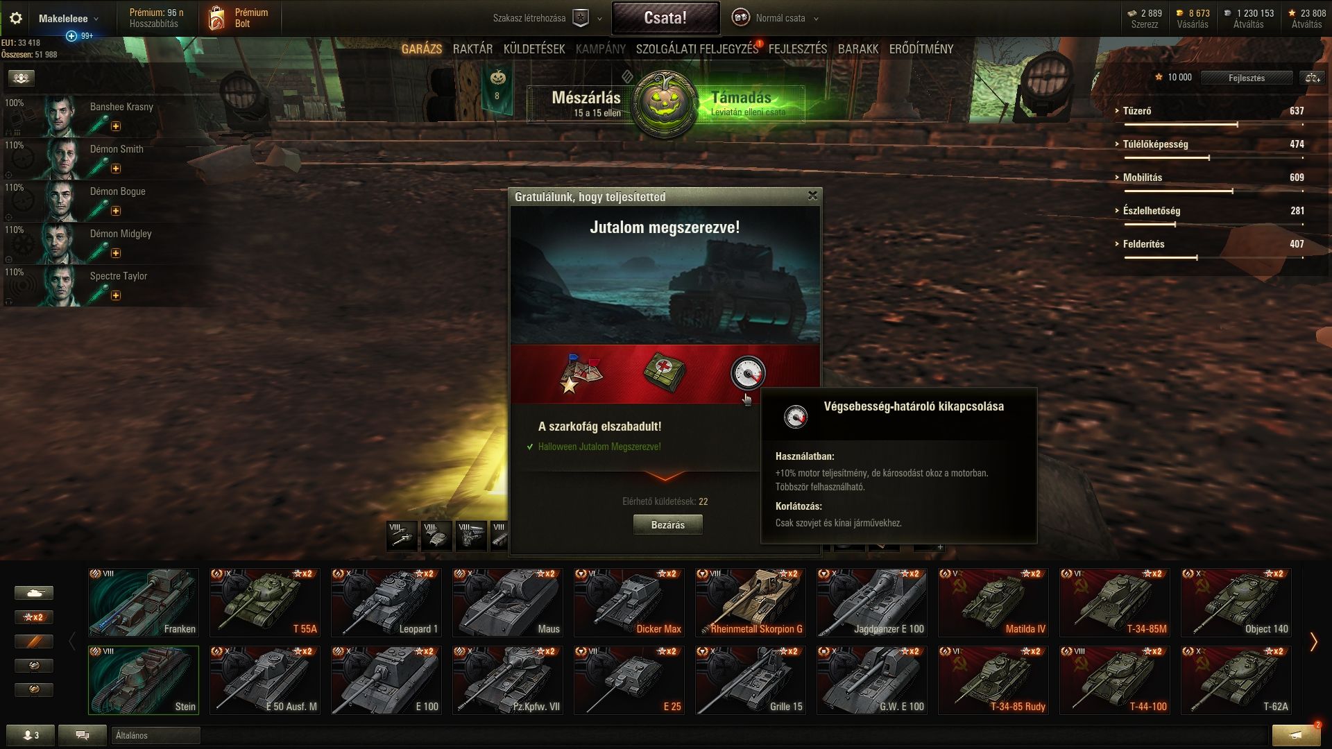 Más: ha már T54, a nagy motort érdemes kifejleszteni hozzá, dob annyit a mozgékonyságán, hogy beáldozzam azt, hogy ennyivel később fejlesztem ki a X-est? Elég lomha ez a tank így, jó lenne egy kis sebességtöbblet, de az ojjekt' kifejlesztése után úgyis megy a levesbe ez is a többi 9-es után. Bár eddig az orosz med stílus tetszik, ezért is akarom a prém T54-est megvenni.