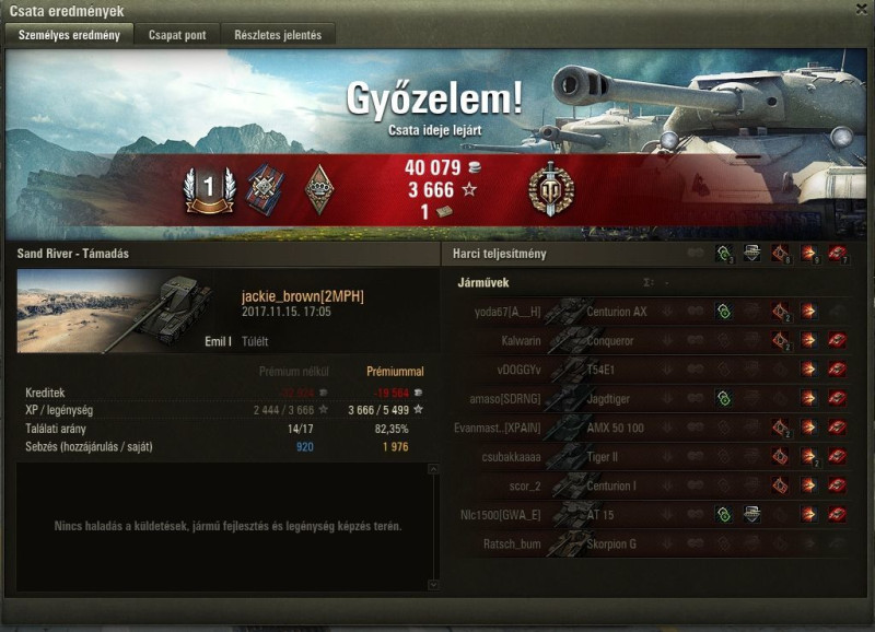 Amúgy finom csata(bár te se használod az autoaim-et, light-al kötelező), nekem még csak tegnap lett meg t49re a nagyágyú, féltem bemenni vele csatába, mert jellemzően ilyen fejlesztéseknél valami durván jó kört szoktam tolni, aztán meg túltolom, és gyenge körök jönnek.