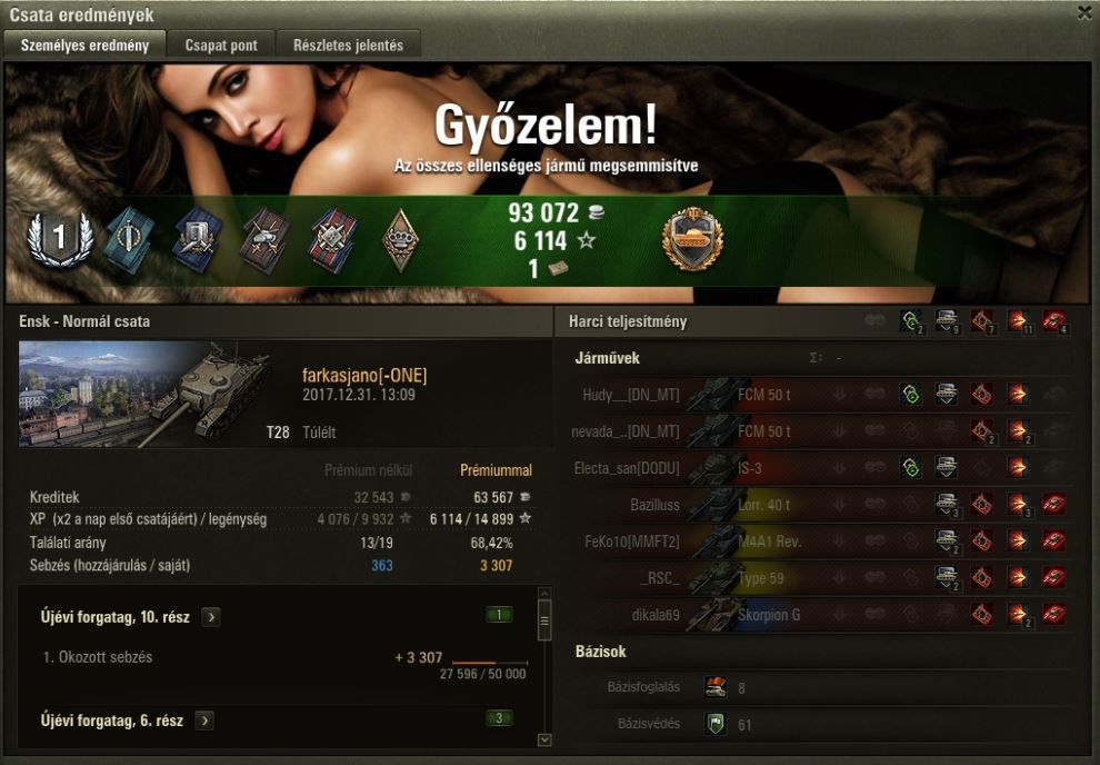 Ugyan nem ért ÁSZT ez a T28 csatám, de számomra sokkal több volt annál - talán eddigi WOT-os pályafutásom egyik legizgalmasabb csatája és a végén sikerült nem elrontanom. (kellett hozzá tudom az enemy is, de akkor is baromi izgalmas volt 1 vs 3 a végén)