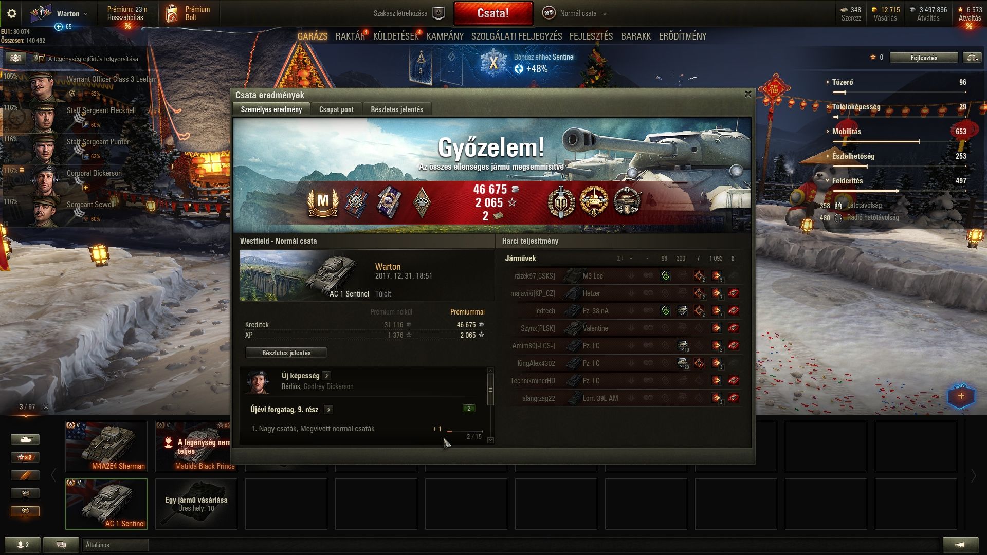 A helyzetfelismerés vagy a felderítő ad nagyobb látótáv növekedést? 13-90-ben a parancsnok a rádiós is, így választhatok. És megvan az első csík is a csövön.