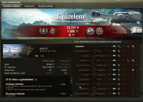 (#164335) inferno88: én pontosan erre az akcióra vártam, mert legutóbb mikor akciós volt a T54 mod1, akkor megvettem az 5x szorzós csaták miatt és azzal farmoltam XP-t, amit most át is váltottam. Volt még 22K a Cent 7/1-en is, így most az 50K felugrott gyorsan 205K-ra. Most lesz miből gazdálkodni megint, csak az a baj, hogy baromi gyorsan el tud fogyni a free XP.