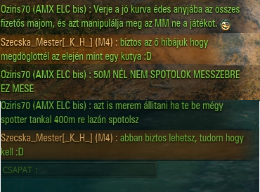 AMX 13-75 el hazánkfia Prokhorovkán a leghátsó bokorban ücsörgött egészen addig, míg már csak pár tank volt hátra az ellenből, köztük 3 arty. Na akkor a koma előreszaladt, és játszotta (volna) a hős, csakhát kapott egy repeszt a popójába...igen, hátulról a csapattól. Persze még neki állt feljebb...