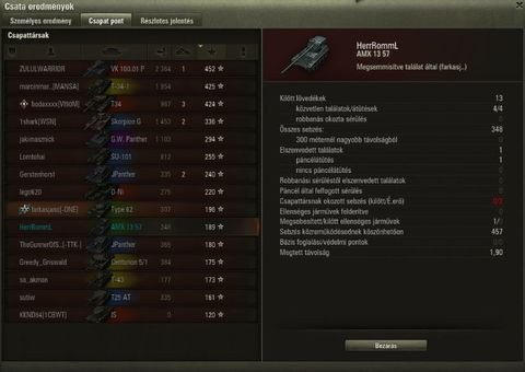 Az a baj, hogy ezek az önkéntes igazságosztók úgyanúgy szétbarmolják más játékát. Legutóbb is 2000 spot damage után kaptam egy szépet az artynktól aztán még a chatben is folytatta, így legalább duplán tudtam jelenteni. A csatát mindenképp buktuk, minden fronton lenyomott minket az ellenfél, a végén csapaton belül így is TOP3-ban voltam, szóval valószínűleg nem rajtam múlott a győzelem.