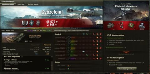 Ugyan nem mai termés, hanem tegnapi, de elújságolom, hogy hosszú-hosszú idő után végre sikerült teljesítenem - rögtön kitüntetéssel - a T-55A HT-7 küldetését, ahol is 3K sebzés mellé még sikeres bázis foglalás vagy resetelés kell és túl is kell élni. IS-M utolsó csatájával abszolváltam egy tier10 csatában.