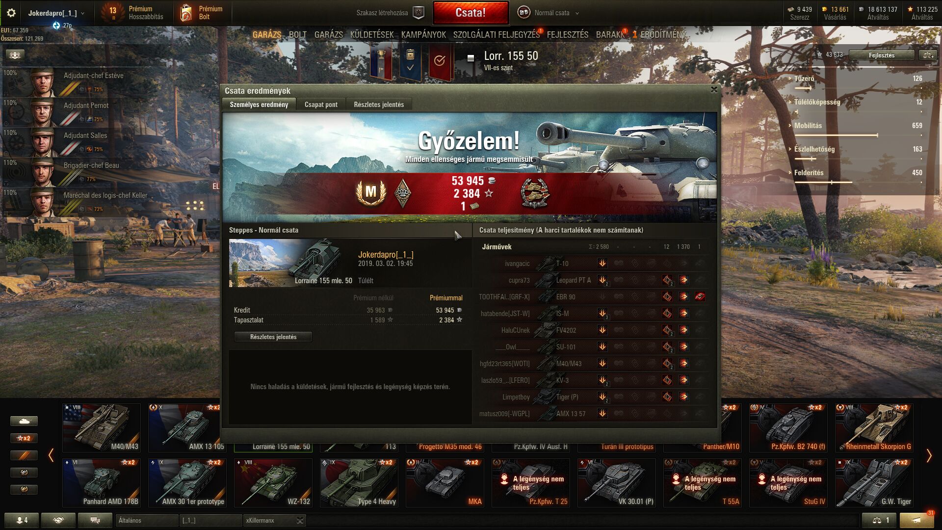 Szerintem kicsit túlvállalta magát, hogy ott akarja 100%-ra hozni a tankjait, nem is tudom meddig fogja bírni idegekkel. Állítása szerint RU szerveren sokkal nehezebb dolga van, EU-n már rég megvan a 100% azzal a francia heavyvel (AMX M4 51).