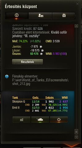 Azt meg nem jelenteném ki csuklóból, hogy ez csak parasztvakítás, a WG programozóitól láttunk már csodákat, pl. az össze-vissza (nem) működő chatet, vagy a játékosok által befolyásolható, elvileg teljesen szerver oldali MM-et, pont ezért változtatták meg a queue képernyőt, már nem mutat tiert, csak tanktípust.Azt meg abszolut nem látom hogy mi lenne a sumákolásból Skill haszna, eléggé híres enélkül is, a WG meg nem különösebben érdekli (amikor kérdezték, hogy miért nem játszik a teszt szerveren, azt mondta, hogy mivel a WG nagy ívben tesz a véleményére, így ő meg nem tölti feleslegesen az idejét)