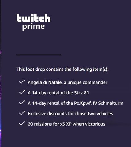 Step 3: Log in to the game to enjoy your loot! If you're in-game now, please relog in.https://twitch.amazon.com/prime/loot/worldoftanks?ref_=SM_OM_WOT1910_CRWN