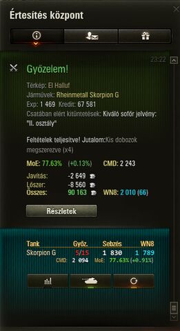 Aki aslain mod-ot használ, tudna nekem segíteni abban, hogy az alábbi képen látható statisztikát melyikkel tudom bekapcsolni? Egyszerűen nem tudok rájönni, pedig végigbogarásztam az egész mod listát, de nagyon elkerüli a figyelmem. Google-en is próbáltam rákeresni, de a battle result modok csak a hátteret , elrendezést írják át.