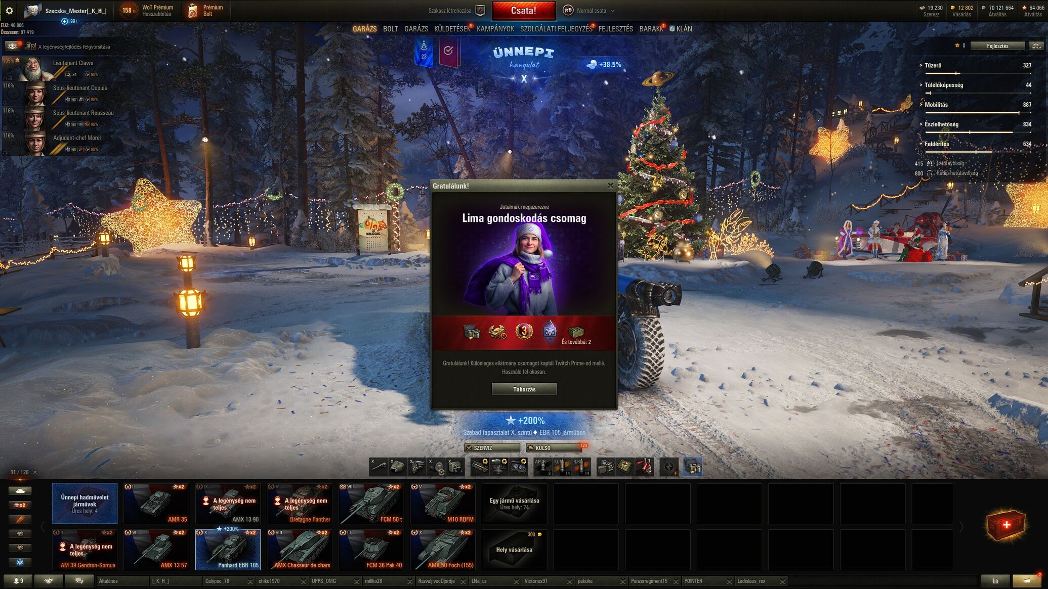 Nyugta Dátum: 2019. 12. 24. 13:42:30 WoT Prémium fiók nap hozzáadva: 3 Kölcsönzött járművek hozzáadva: Pz.Kpfw. IV Schmalturm (bérleti idő: 14; legénység 100% barakkba küldve), Strv 81 (bérleti idő: 14; legénység 100%) Hozzáadva: Univerzális kézikönyv (x1) "Prime ünnepség" stílus hozzáadva Szolgálati feljegyzés: HópehelyHozzáadott járművek Dátum: 2019. 12. 24. 13:42:27 Jármű hozzáadva: King Tiger (Captured) (legénység 100%) Hozzáadva: férőhely a garázsban, 3D stílus.