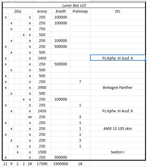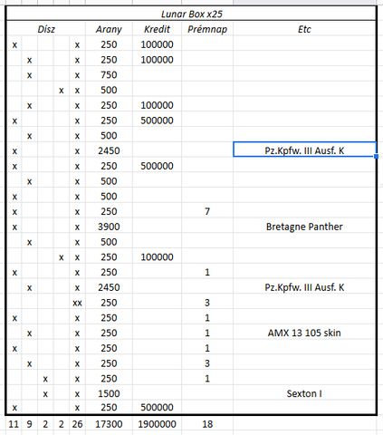 Érdemes valamire még aranyat tartalékolni? Csak mert ugye adventi ajánlatból is van meg hátra meg igen rebesgetik a fekete piacot is... csak olyan tankra ruháznék be amit úgymond használni is tudok. Nem tudom mi lehet még most nagy durranás. 44 ládából kiszedtem minden járművet meg festést is.