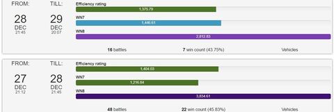 Nálam elég változó, én többnyire nem top vagyok, hanem középmezőny, de ezzel semmi bajom, mert a karácsonyi szezonban több a játékos, gyorsabban össze is rak egy meccset az MM és nem húzza szét annyira a mezőnyt (ritka az, hogy egyszerre három Tier legyen a csatában, inkább 1-2). De ez csak az én megfigyelésem.