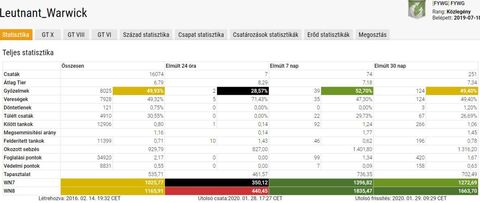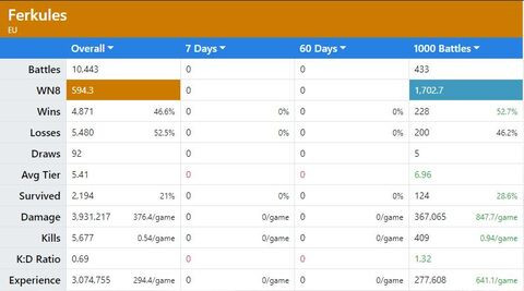 Múltkor irtam (linkeltem is). Nő kicsit a wn8-am, a kiosztott sebzés az xp, látszott a garafikonon. A wr viszont csökken. És ilyen anomáliák vannak. 30-40% wr - 60-80%. Ritkán van 50 körül mint amire képes vagyok, amit tudok (naponta értendő). -