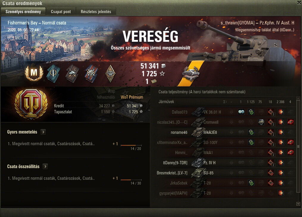 8 csata után 2 győzelem volt, aztán a 9-ben vesztes helyzetben sikerült becapelni, a 10. meg sima győzelem volt, így lett 40% a wr. A tank egyébként nagyon jó, remélem a nagy motor még észrevehetően javít a mozgékonyságán, de így egy darabig eltart, amíg kifejlesztem.A játékban csak a játék közbeni és a global chat működik, még a csataösszesítőből sem lehet üzenetet küldeni másoknak...