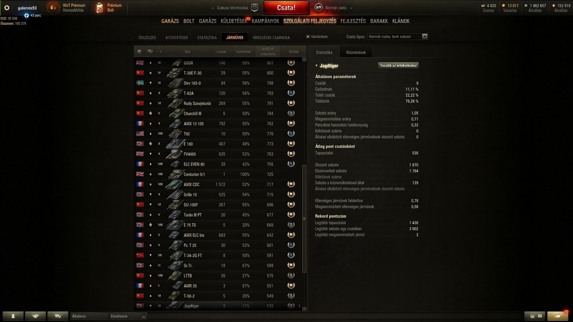 Itt van másfél éve a 9-es cseh a garázsban, és kemény 60ezer xp-t raktam bele, annyira nem köt le, pedig mindenkinek áll tőle a kuki. Standard B hasonló, tényleg baba tank, magamhoz képest még jó is vagyok vele, de egyszerűen nem köt le. Heavykkel nem is játszom, SC és a WZ 111-4 0 kilométerrel áll a garázsban, legalább fél éve. Valami másra vágyom.