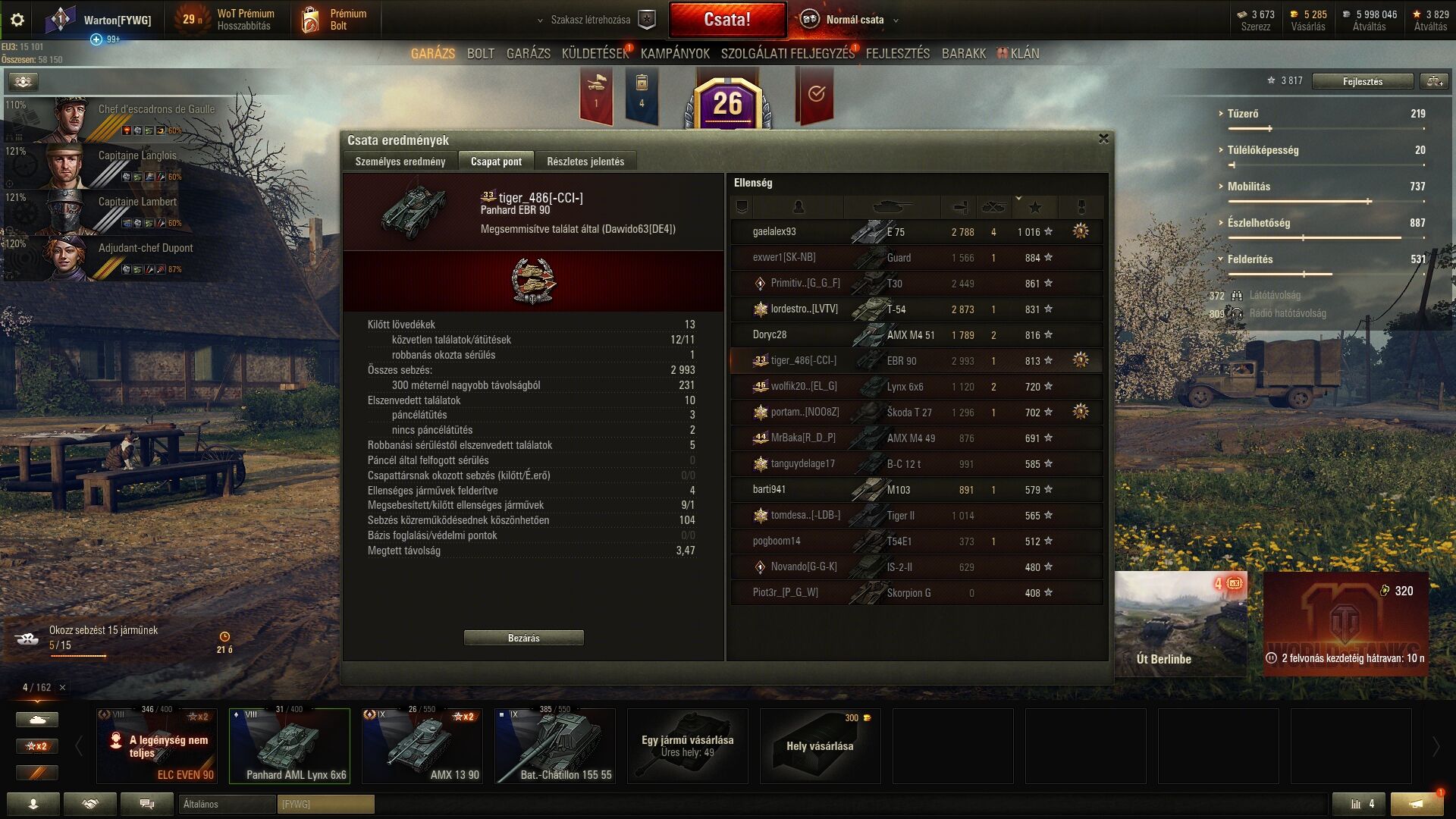 Az elején se ment a kutya se a heavy oldalra én meg mondtam jó akkor kapja be mindenki megyek snipeolni, azzal talán érek valamit. E4-el voltam btw. Jött is egy fél hp-s kocsi megölni az artát, hát nem azt találta hanem egy E4-et. De eléggé kiszedett innen egy goldozó Progetto meg az kattintós srácok