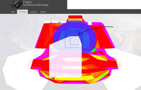 Az a sötétebb kék terület a cső körül 305 mm, az a lyuk amiben mozog a cső. Azt például a legtöbb 10-es tank HEAT-je beviszi persze HEAT esetében akkor ha a csövet nem találod el hanem direkt mellette lövöd.