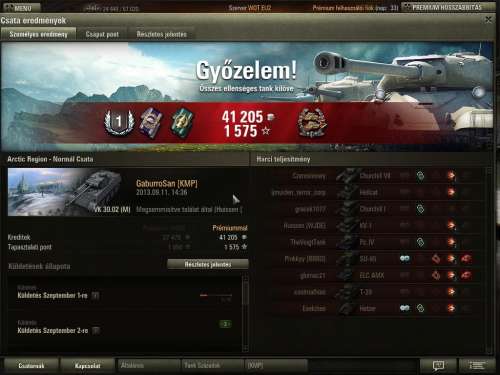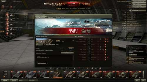 Átlag sebzésem 1240 és az átlag tapasztalat 616. Tank ász is megvan rá, voltak fantasztikus 100e nettó kredit feletti csatáim vele, de ha nem akarom a WR-t rontani, akkor inkább nem veszem elő. Nem értem, mert T29, 32-vel jól megy.Érdekes ez, mert vannak nagyon jó WR-es prém tankjaim (su12244 56%, psz35 65%, ram2 72%, T25 65%), de a T34 messze a legrosszabb, bármit csinálok, túl sokszor veszítek vele. Nem akarom feltétlen a csapatra fogni, de az átlagsebzésem annyira nem alacsony (kb 3-4 betalált lövés átlagban), úgyhogy legalább közepes 50% körüli lehetne vele a WR teljesítményem, szóval nem indokolt ez a rengeteg vereség.