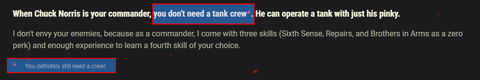 Mert ha elqják, akkor az lesz az utolsó szeg a játék koporsójába részemről! Szinte az összes tankomban minimum 4 skill-es a legénységem, de van pár, ahol 7-ik skill-t tapossák a lányok vagy épp srácok, szal nagyon bízom abban, hogy ezt jól átgondolja ez a nyomi brigád.