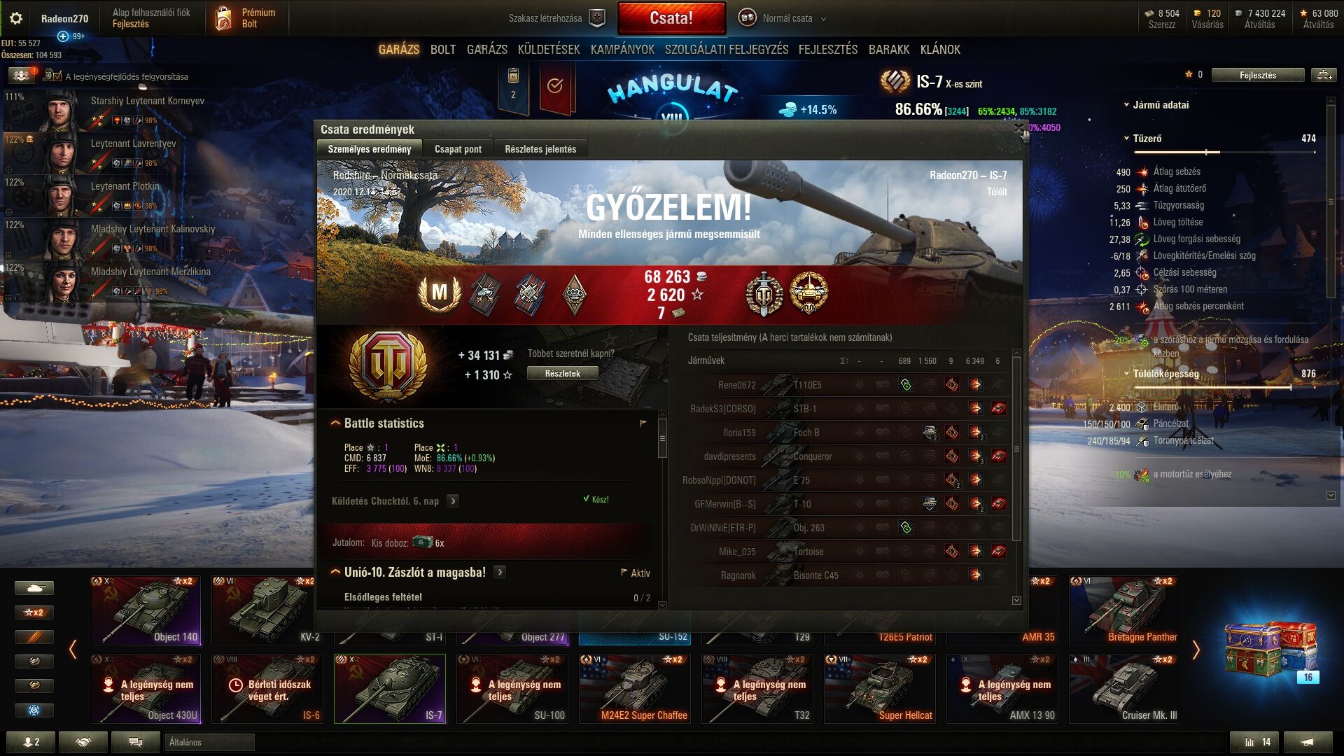 3-nak csak úgy az élces megjegyzésére válaszul. Ez a következő csata volt úgy,. hogy közben le kellett mennem beengedni a családot, mert a kulcsot a zárban hagytam. Igaz nem ÁSZ, de így is második lettem XP-ben és 3-ik sebzésben. És szintén tier7-ben! Jöhetnek a hasonlók PRO gamerek!