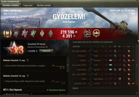 Annyira felidegesített az egyik meccsen az arty, hogy a végén én is mentem pár kört a GW Pantherrel, és VÉGRE SIKERÜLT megcsinálni a T28 utolsó küldetését. Már csak az LT-15 kell, az meg gyerekjáték, 4000 kombinált.