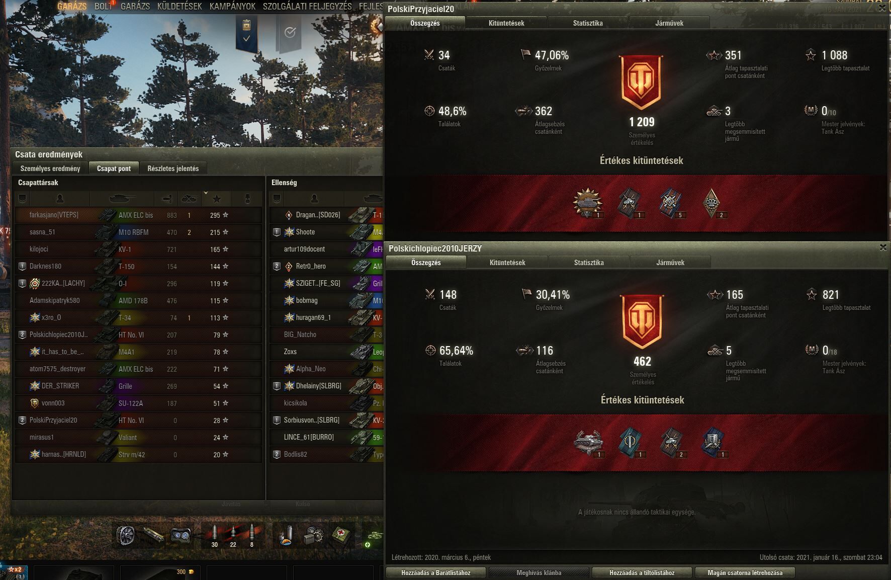Tegnap kpz50t-vel majdnem meglett az obj260 mt14-es küldetése. 6 kill és 4k sebzés kell hozzá. Volt három killem és maradt három ellenfél és én. Akkor már 4k sebzés közelében voltam, talán már felette is. Maradt egy tiger2 sok hp-val, egy wtpz 9-es td 100 körüli hp-val meg egy lóri arty. A pálya fisherman's bay. Volt egy borat, ami rettentő idegesítő volt, de szerencsére az utolsó csapattárs halála előtt kinyírta. KT ment foglalni, simán spotból kilőttem úgy, hogy nem is látott meg. A malom oldalán a gerincen mentem vissza, hogy majd ha a wt ott lesz valahol, akkor spottolom a kpz50t-n fullos a camo a legénységnél, szóval láthatatlan a tank. És a wt legutoljára a kikötő felőli oldalon volt. Erre viszont már visszaért és bement középre, ráadásul pont a malom felőli oldalon, szóval spottoltam de sajnos ő is meglátott. Meg kellett állnom, mert a kpz-vel se nagyon lehet eltalálni semmit mozgás közben (a korábbi meccseken szerzett tapasztalat). Megálltam, egy pillanatnyi kivárás, hogy szűküljön a célzókör. A wt állt, de a tornyát forgatnia kellett neki is, szóval lőttem, de pont akkor ő is, és kinyírtuk egymást. 5 kill és 5k dmg. És az a nyomorult arty megnyerte a meccset 600 sebzéssel. Lehet, hogy meg kellett volna próbálnom a kapáslövést, hátha, de nekem is csak 500hp-m volt, szóval simán kinyírhatott volna, a nyílt terepen meg nem tudtam volna nagyon menekülni.Esetleg az lett volna még megoldás, hogy lemegyek a gerincről a pálya széle felé, és máshonnan spottolom újra. Mérges voltam, hogy ott voltam a küldetés megcsinálásának küszöbén, és jók voltak az esélyek, de nem sikerült.Ez meg csak egy példa, hogy az xp számítás fura: