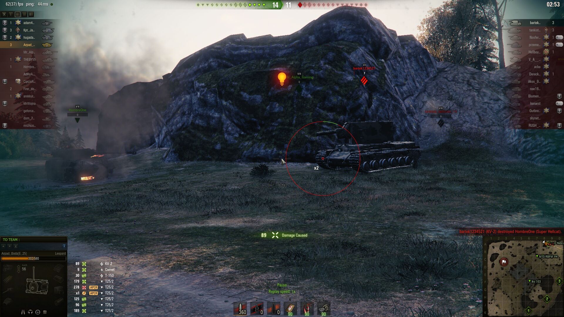 T7 csata, Leopard, már volt 3 killem, vezetünk, ellenfélnél már csak egy KV2 él.