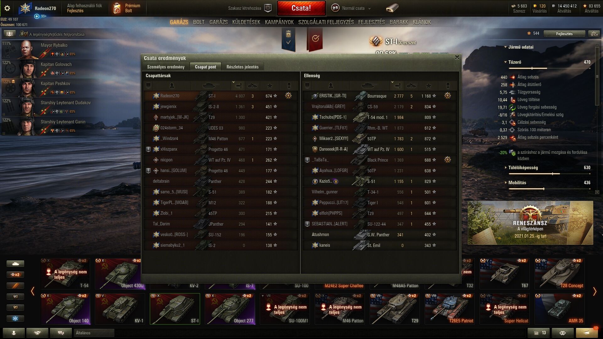 Most lett hányingerem a 10. 5:15-ös bukó meccs után és zártam be a játékot. Ok. Ne legyenek konteók, de hogy van az, hogy lezavarok 30 meccset, amiben egy ilyen sincs, aztán hirtelen 30 csata után jönnek az ilyenek csőstül, egymás után?? Pedig hányszor megfogadtam, hogy napi 30 meccsnél többet nem játszom, mert 30 meccs után 10-ből 9x pont ez a vége, egyszerűen elkurvul a game. Persze, az eleje is sokszor fos, ott is van, hogy az első 6-10 meccs bukó, de nem ennyire durván, hanem mondjuk szoros meccsekben. De ez, hogy ledarálnak mindenkit 3 perc alatt, ezt nem hiszem el. Az meg a másik poén, hogy amikor az a küldi, hogy nyerj meg pl. 4 csatát, az qrva élet, hogy mondjuk a 4 csatát 15-ből sem nyered meg. Milyen érdekes. Ugye. A pattintgatós, kritikus sebzésekről meg ne is beszéljünk. Az is fura, hogy ma éppen figyeltem, hogy pl. pontosan hason lőttem párszor olyan tankot, amire a végén azt írta, hogy lánctalp. Amikor köze nem volt hozzá. A kerekest (lynx) meglőttem hátulról Strv S1-el, golddal, erre ugyanúgy szaladt tovább, zéró dmg csak egy critical volt a felfüggesztésre. Érdekes, hogy akkor is épp egy ~5:15-ös meccset buktunk. Vagy a kínai 121-et szemből golddal lőttem 3x és mind pattant - (alváz, full bukó 2:15-ös meccs), másik csatában, amiben éppen nyertünk, ugyanazzal ugyanúgy (ugyanazt a 121-et) sima lőszer még a tornyot is bevitte. Most arról nem is beszélek, hogy teljesen rákényszerít a játék a gold lőszerre, mert anélkül semmi vagy. És tök mindegy, hogy miben "ülsz". Prémben, vagy nem prémben.