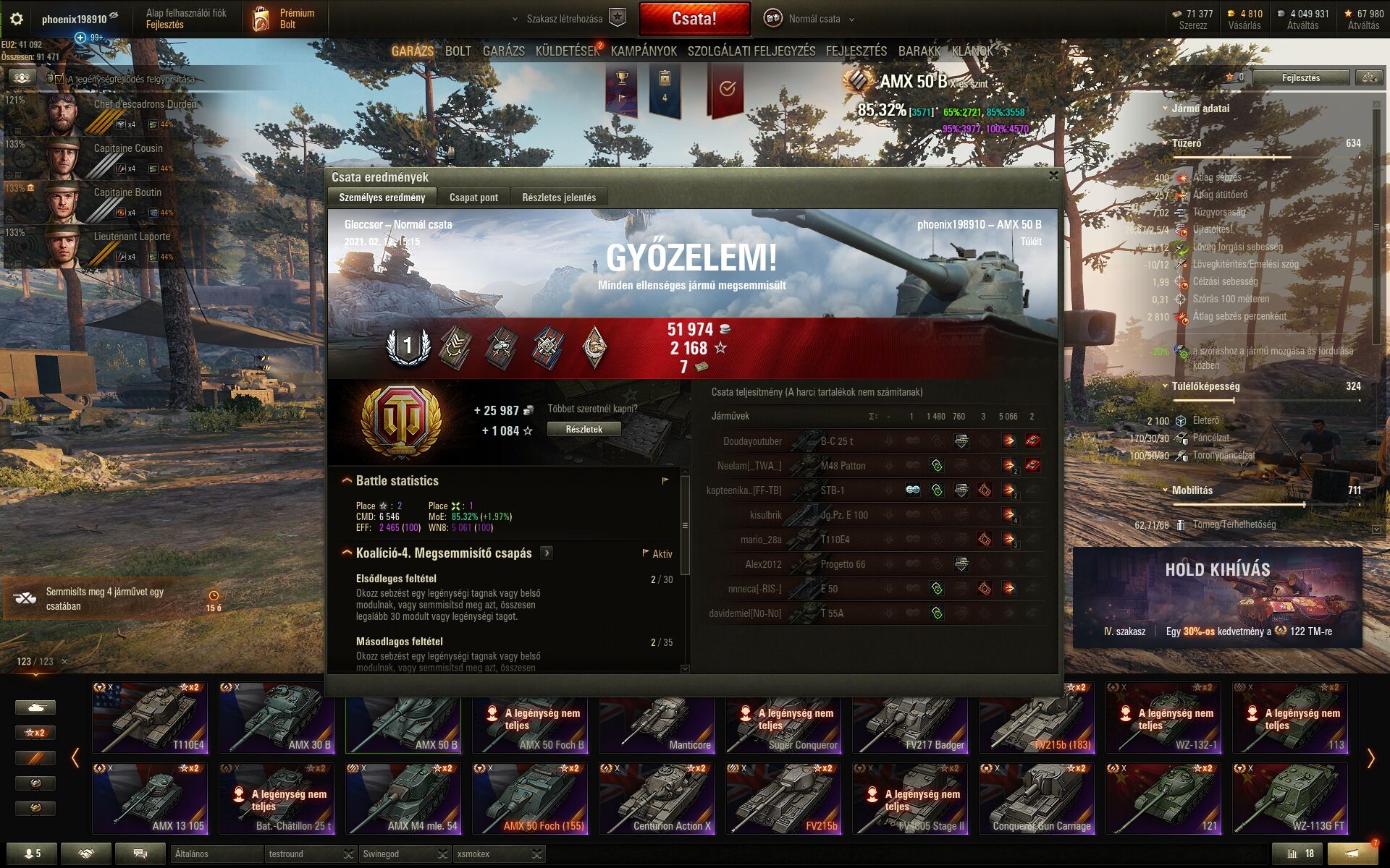 Ezen felül voltak a kiválasztott tankok, pl m48 Patton és TVP 50/51 amiknek több pontot adott, de ez sem egyenlően, ne kérdezd miért...