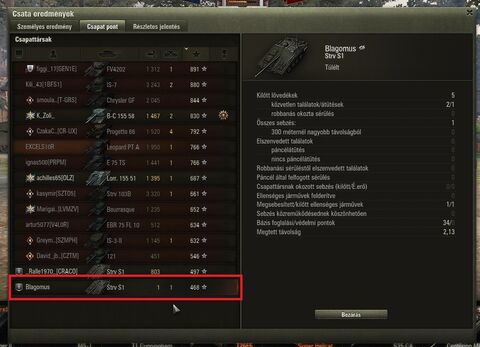 Csak a kill, amiben jobb volt nálam, de minden másban viszont sokkal gyengébb! És mondtam, másik csatában hiába volt 3 killel többem, ott a másik tank kapta a több XP-t pedig csupán 500-al volt több sebzése.