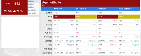 direkt nem keztem el az első héten, de most ugyanaz a helyzet: 208 csatából nem tudtam feljutni a div.2-be. 47%teljesítmény 1800 átlagsebzés. szóval ez a wg szégyene nem az enyém.