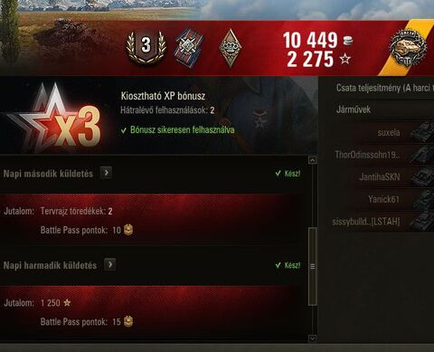 Próbáltam egy T110E3 kört menni, az úgysem egy sietős tank, de csak felidegelt egy belőhetetlen Obj 277, úgyhogy félreteszem hanjalig, amikor visszatér a normális net. -