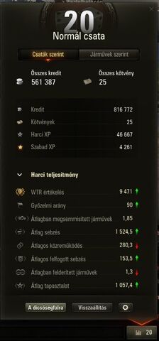Egyik csatám, ami jól jellemzi azt az összesen 4-et amit mentem eddig: 24 lövés, 14 találat, 4 átütés.