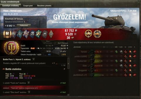 Mivel látom, hogy van új Battle Pass, gondoltam neki állok és elkezdem és korábban többen javasolták, hogy tier6 tankokkal lehet talán a leggyorsabban haladni, ezért elővettem a T-34-85M.