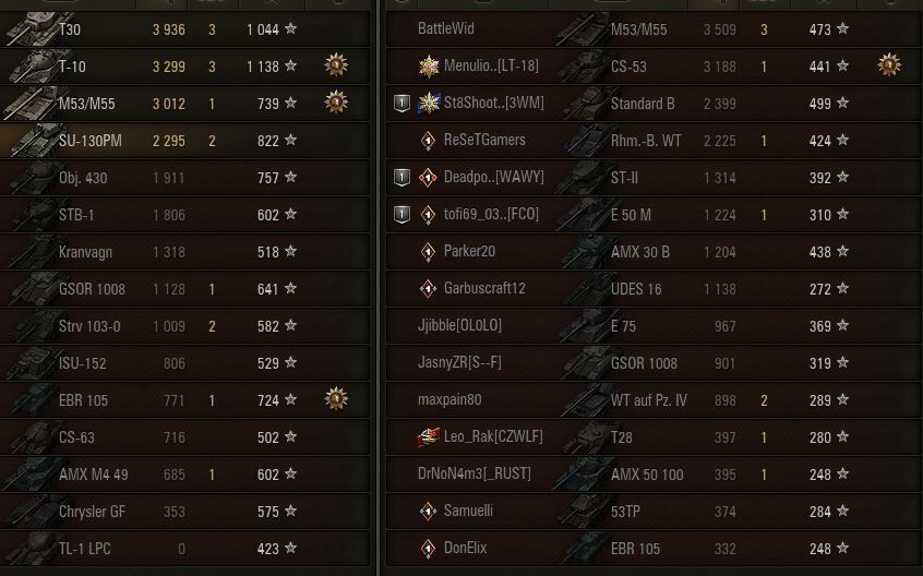 Akinek van egy kis kedve ideje megnézni egy replayt, mindjárt az első csata most cseréltem a Leo 1-en felszerelést levettem az optikát feltettem a vstabot meg átszereltem az stb-ről két lila cuccot. Kb. 6:10 van hátra a csatából és 3 lövésem egymás után nem tudom értelmezni hova ment. [link]