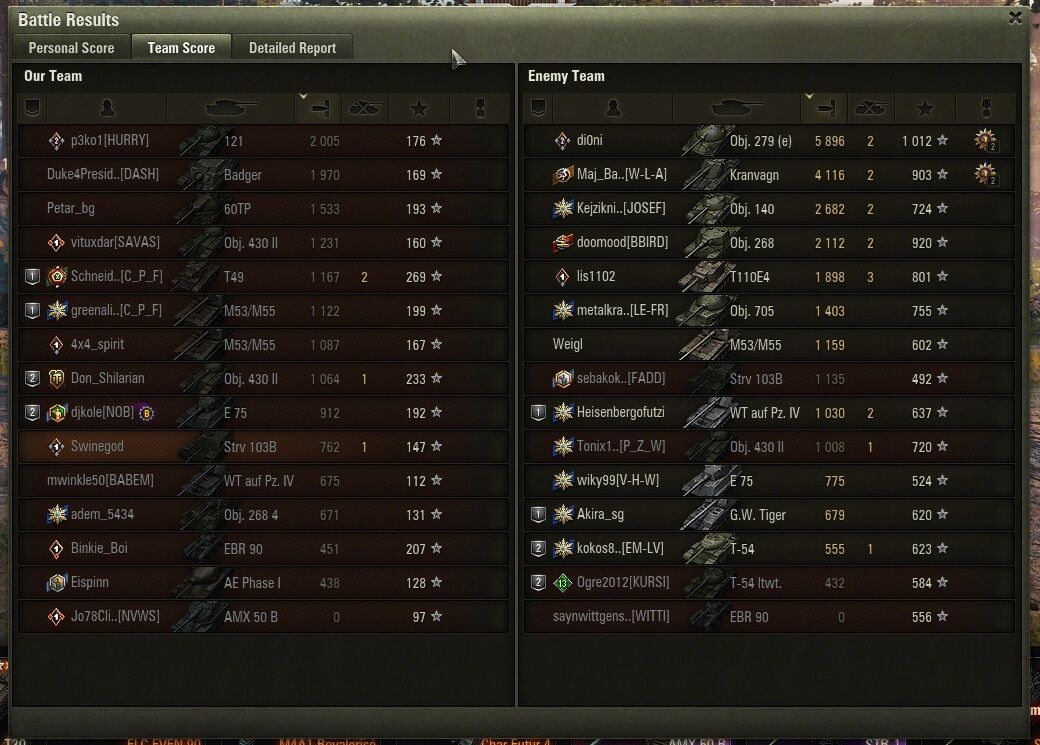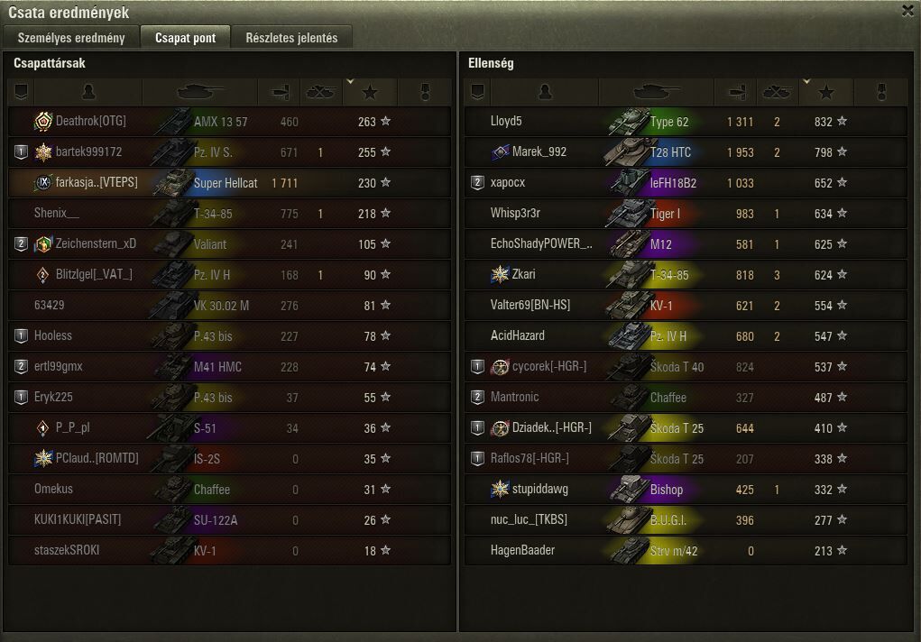 Én jártam már úgy 60tp-vel, hogy az elején buktam 8-10 másodpercet a tülekedés miatt, meg mert tankok össze vissza variáltak, hogy merre menjenek és ki kellett várnom. Mire éppen leértem a dombról, már villant egy stb1 középen. Éppencsak vissza tudtam húzni a tank elejét és így nem lőtt meg. A csapat végig ugatott rám, mert riportolással fenyegettek, de mi a sz.rt lehetett volna csinálni? 4-5 lövést is bekaptam volna csak az stb1-től, nem is számolva a killereket meg a többi ellen tankot. Előttem ment egy obj705a, azt megtépték rendesen, még úgy is, hogy nagyon trollos az oldala.