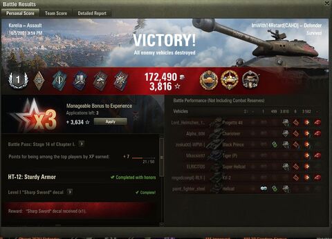 Már aki van olyan ügyes, mint Te. Nekem nem jönne össze így. Nekem sokka egyszerűbb úgy, ahogy most is csináltam. Az utolsó küldetéseket első osztályra megcsinálni. Van pár tank ahol esetleg meg lehetne próbálni az Ászt is, de az Én időnként hektikus játékom -értsd, nem tudok folyamatosan egy szintet hozni - miatt ez nem pálya. Tegnap 10 csatából 10-ben, ha nekem jól ment, akkor kikaptunk, ha nem ment jól, nyertünk