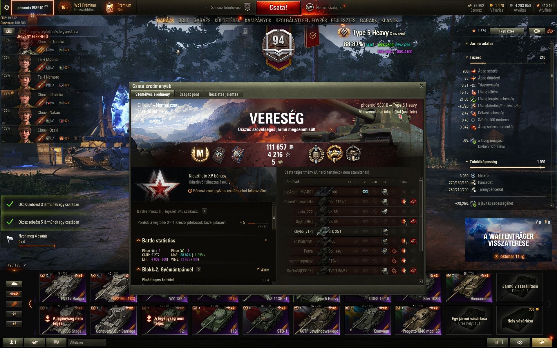 ezeket kiváltottam még anno, most meg, mikor már nem kell, mert már megvan az Obj260, akkor bezzeg sikerül a küldetés....ráadásul kitüntetéssel. Van 5 parancsom oda és tökre nem tudom használni semmire... bárcsak át lehetne váltani a 279-re