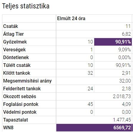 Ma már ennyire nem ment, legalábbis átlagsebzésben elmaradtam a tegnapitól mert volt 3 csatám is amit benéztem és nulláztam. A wr viszont ma is szuper volt, 11-ból 8 vagy 9 győzelem. -