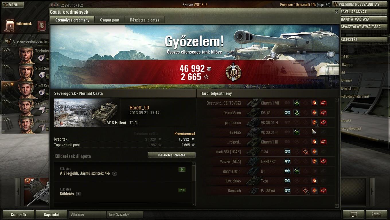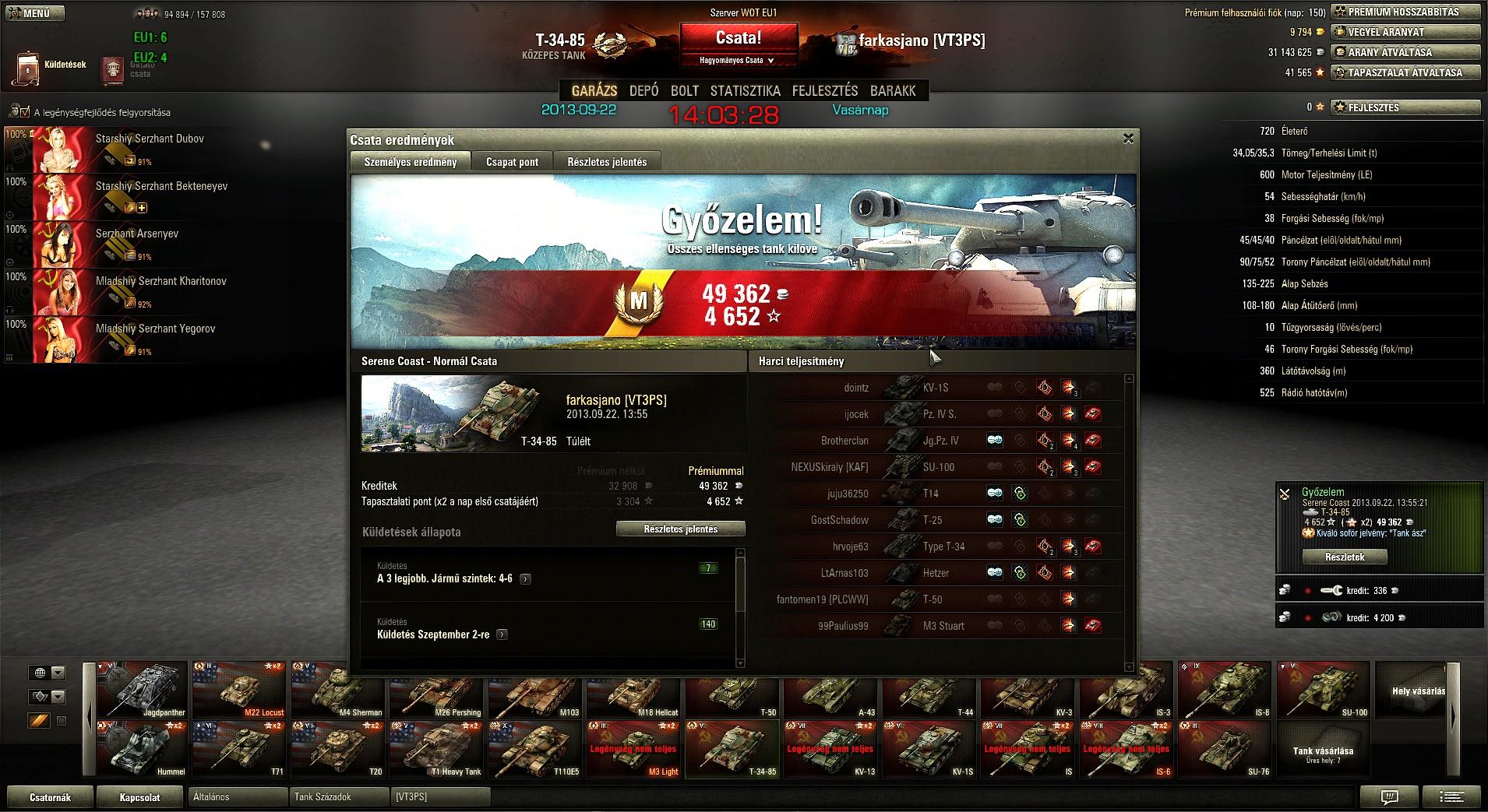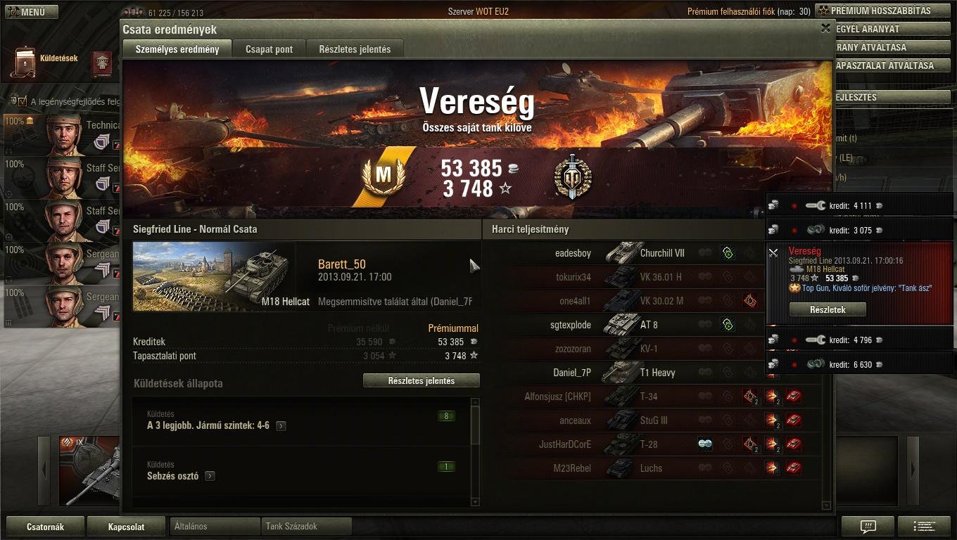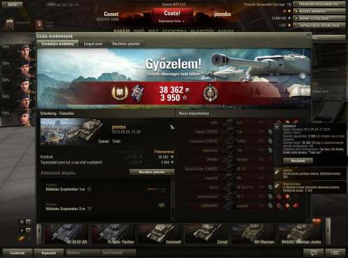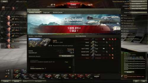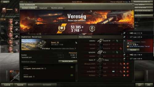Fjords keleti oldal, gondoltam megyek egy kört a Lorraine 39L AM-mel, mert csapnivaló a statom vele. Erre perceken keresztül egy T-28-as vízbe akar fojtani. Kétszer sikerült kijönnöm az utolsó pillanatba, de harmadszorra már nem hagytam annyiban, begurultam, kilőttem. Állandó manőverezgetés közben magyarázkodásra nincs idő, csak egy-egy F7-et nyomni. Erre jött a csapattársaktól, hogy mekkora idióta vagyok... Legalább megtudtam, hogy víz alól tényleg nem lehet lőni!