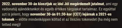 A [Well Deserved Reward] ez.Battle Pass-ba belemész és ott irja hogy Tárgyak Tokenekért december 20-ig
