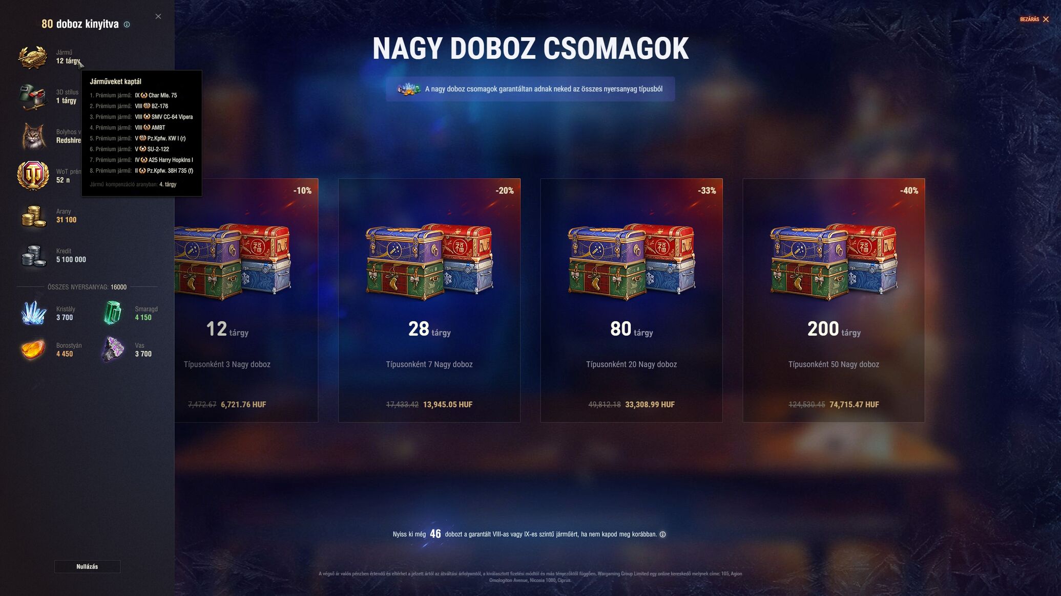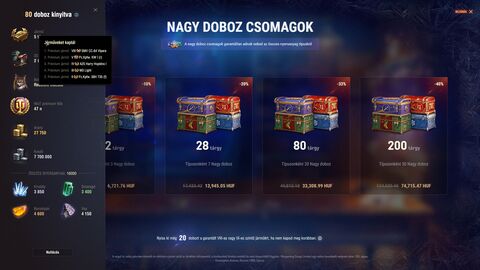 #239546egyedülülő: ezért döntöttem én a 200 db mellett egyszerre, mert tudtam, hogy ha nem adja be valamelyik tankot, amit akarok, akkor megint veszek 100 ládát és az már úgy nem éri meg. Illetve bíztam benne, hogy a 200 ládás csomagra rá van tekerve kicsit a pótméter és igazam is lett, mert elmebeteg mennyiségű cucc jött ki.
