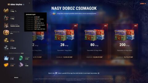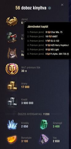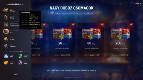 100 ládábol minimum kaptál 2 premium tankot és 25000 goldot, elvileg már ennyitől a pénzednél vagy. És mellette ott a sok apróság."75 ládábol eddig minden évben kiadott mindent"